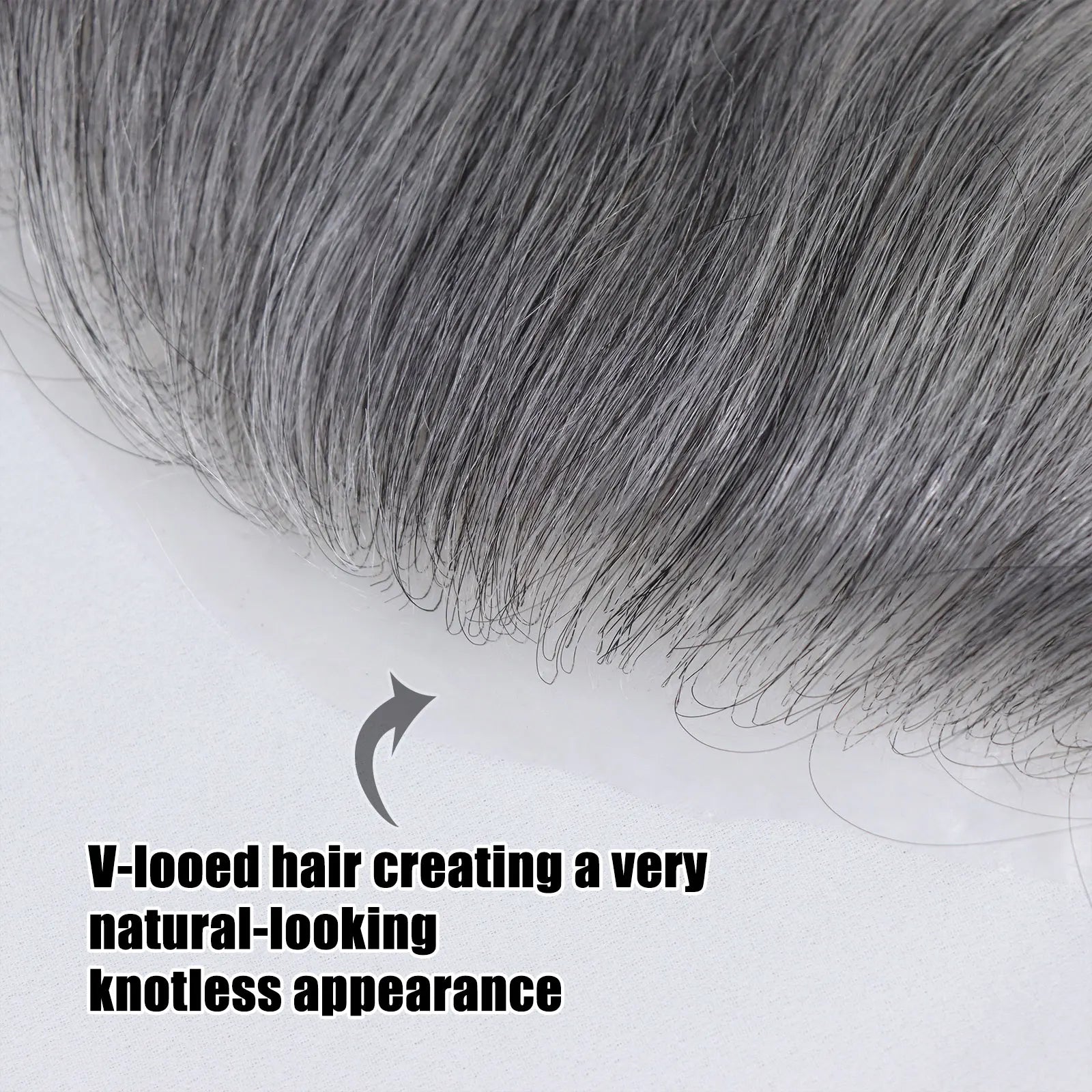 0.06mm Brown Straight Man Toupee V Style Frontal Hairline For Men 15cm Human Hair Ultra Thin Skin PU Men's Capillary Prosthesis